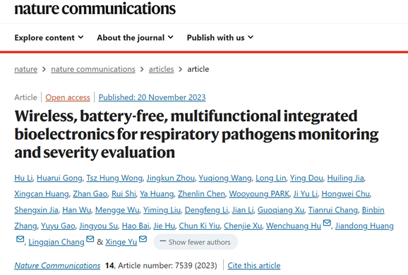 在呼吸道感染性疾病中,对病毒及其感染后症状严重性的快速诊断具有重要意义。目前,对呼吸道病原体的小型化、可穿戴或便携式检测技术依赖于唾液、血液及鼻咽拭子采样。要通过呼吸或吹气的方式实现检测及症状严重性评估,依然面临着尚未解决的技术壁垒:1.依靠器件本身实现呼吸气溶胶中病毒的快速收集及现场检测;2.对呼吸活动的多参数监测及深度分析;3.检测系统的小型化集成;4.病毒感染后症状严重性的非侵入式评估。 近日,香港城市大学于欣格教授与北京航空航天大学常凌乾教授联合香港大学黄建东教授、四川大学华西医院胡文闯教授报道了一种无线无源多功能呼吸道病原体检测系统,该系统可以连续快速捕获并检测呼吸活动产生的气态病原体样品。通过机器学习,该系统还可以对病人感染病毒后的症状严重性进行实时快速诊断预测。相关成果发表在Nature Communications上。 研究者们开发了具有气液界面的气溶胶微流道结构,在气液界面处实现了对病毒的连续快速捕获。通过将免疫生物传感器、呼吸频率传感器、温度传感器和NFC无线通信芯片一体化集成,借助机器学习技术,作者们实现了通过呼吸活动对感染及其症状严重性的快速准确诊断。同时,通过适当的结构调整,作者们展示了该技术在小型化可穿戴的电子诊断设备、个性化的电子诊断饰品及皮肤电子设备中的应用。▲无线无源多功能病原体感染诊断系统通过呼吸及吹气对病毒感染进行诊断。(图片来源:参考资料[1])实验招募了42位志愿者,以新冠病毒为例对新技术进行了检验。测试结果表明,该技术可以在1分钟内实现对阳性及阴性健康状态的诊断。通过吹气检测,4分钟准确率达到100%。通过呼吸检测,25分钟准确率达到100%。▲通过呼吸和吹气测试实现阳性及阴性志愿者的快速准确识别。(图片来源:参考资料[1])研究人员通过机器学习模型进行病毒感染及症状严重性评估预测,对病毒感染的预测准确率为100%,对症状严重性预测的准确率为92.3%。▲机器学习辅助的多参数呼吸分析实现SARS-CoV-2感染及症状严重性诊断评估。(图片来源:参考资料[1]) 这一小型化可穿戴的集成生物电子技术,可以快速高效的从空气中捕获气态病原体样品,并实现对抗原蛋白的快速现场识别。该技术无需人工采样和复杂的样品预处理,避免了依赖昂贵的大型设备,频繁更换电源及繁琐的实验室检测流程。该技术不仅仅局限于新冠病毒检测,同样适用于流感病毒等其他呼吸道病原体的检测。[1] Li, H., Gong, H., Wong, T.H. et al. Wireless, battery-free, multifunctional integrated bioelectronics for respiratory pathogens monitoring and severity evaluation. Nat Commun 14, 7539 (2023). https://doi.org/10.1038/s41467-023-43189-z ——来源于《学术经纬》