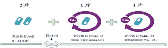 国际上口服TDF/FTC(300mg /200 mg)用于PrEP的服药方式主要有两种[2],分别为每日服药方案和事件驱动服药方案(event-driven, ED-PrEP)又称按需(on-demand)服药方案。(1)每日服药方案:每24小时口服1片TDF/FTC。(2)按需服药方案:指在预期性行为发生前2~24小时口服2片TDF/FTC,在性行为后,距上次服药24小时服药1片,48小时再服用1片TDF/FTC,即所谓“2+1+1”PrEP按需服药方式,见图1[2]。