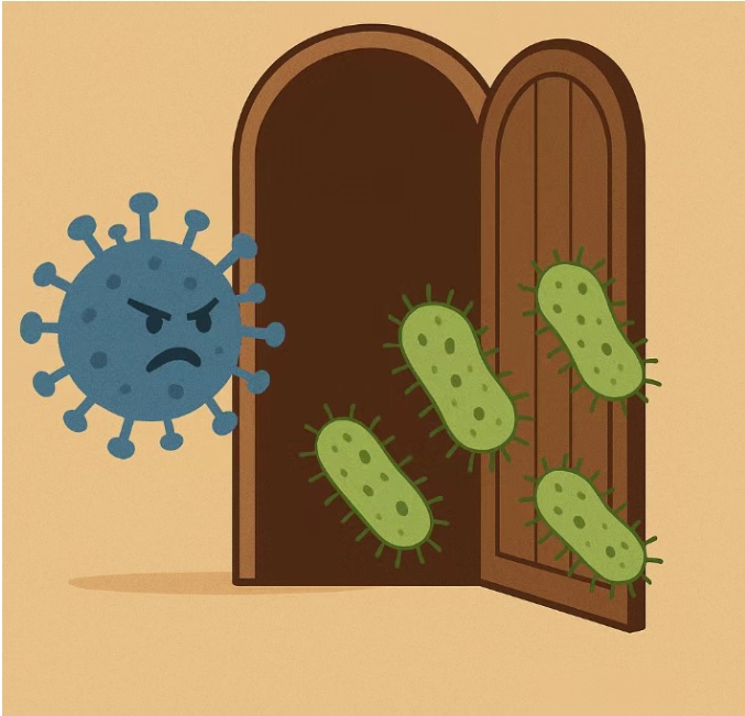 当免疫军队忙着对付病毒,细菌那一边的防线就薄弱了。